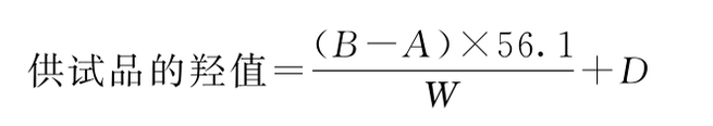 本法適用于供藥用或藥用輔料的脂類物質(zhì)及類似物(不包括揮發(fā)油)的測定。液體供試品如因析出硬脂發(fā)生渾濁時,應(yīng)先置50℃的水浴上加熱,使完quan熔化成澄清液體;加熱后如仍顯渾濁,可離心沉降或用干燥的保溫濾器濾過使澄清;將得到的澄清液體攪勻,趁其尚未凝固,用附有滴管的稱量瓶或附有玻勺的稱量杯,分別稱取下述各項(xiàng)檢驗(yàn)所需的供試品。固體供試品應(yīng)先在不高于其熔點(diǎn)10℃的溫度下熔化,離心沉降或?yàn)V過,再依法稱取。熔點(diǎn) 照熔點(diǎn)測定法(通則0612第二法)測定。酸值 酸值系指中和供試品1g中含有的游離脂肪酸所需氫氧化鉀的重量(mg),但在測定時可采用氫氧化鈉滴定液(0.1mol/L)進(jìn)行滴定。除另有規(guī)定外,按下表中規(guī)定的重量,精密稱取供試品,置250ml錐形瓶中,加乙醇-乙mi(1∶1)混合液[臨用前加酚酞指示液1.0ml,用氫氧化鈉滴定液(0.1mol/L)調(diào)至微顯粉紅色]50ml,振搖使完quan溶解(如不易溶解,緩慢加熱回流使溶解),用氫氧化鈉滴定液(0.1 mol/L)滴定,至粉紅色持續(xù)30秒不褪。以供試品消耗氫氧化鈉滴定液(0.1 mol/L)的體積(ml)為A,供試品的重量(g)為W,照下式計算酸值:羥值 羥值系指供試品1g中含有的羥基,經(jīng)用以下方法?;螅铓溲趸浀闹亓浚╩g)。除另有規(guī)定外,按下表中規(guī)定的重量,精密稱取供試品,置250ml的干燥碘瓶中,精密加入酰化劑(取對甲苯磺酸14.4g,置500ml碘瓶中,加乙酸乙酯360ml,振搖溶解后,緩緩加入醋酐120ml,搖勻,放置3日后用)5ml,用吡啶少許濕潤瓶塞,稍擰緊,輕輕搖動使完quan溶解,置50℃±1℃水浴中25分鐘(每10分鐘輕輕搖動)后,放冷,加吡啶-水(3∶5)20ml, 5分鐘后加甲酚紅-麝香草酚藍(lán)混合指示液8~10滴,用氫氧化鉀(或氫氧化鈉)滴定液(1mol/L)滴定至溶液顯灰藍(lán)色或藍(lán)色;同時做空白試驗(yàn)。以供試品消耗的氫氧化鉀(或氫氧化鈉)滴定液(1mol/L)的體積(ml)為A,空白試驗(yàn)消耗的體積(ml)為B,供試品的重量(g)為W,供試品的酸值為D,照下式計算羥值:碘值 碘值系指當(dāng)供試品100g充分鹵化時所需的碘量(g)。除另有規(guī)定外,取供試品適量[其重量(g)約相當(dāng)于25/供試品的最da碘值],精密稱定,置250ml的干燥碘瓶中,加三氯甲wan10ml,溶解后,精密加入溴化碘溶液25ml,密塞,搖勻,在暗處放置30分鐘。加入新制的碘化鉀試液10ml與水100ml,搖勻,用硫代硫酸鈉滴定液(0.1mol/L)滴定剩余的碘,滴定時注意充分振搖,待混合液的棕色變?yōu)榈S色,加淀粉指示液1ml,繼續(xù)滴定至藍(lán)色消失;同時做空白試驗(yàn)。以供試品消耗硫代硫酸鈉滴定液(0.1mol/L)的體積(ml)為A,空白試驗(yàn)消耗的體積(ml)為B,供試品的重量(g)為W,照下式計算碘值:過氧化值 過氧化值系指供試品1000g中含有的其氧化力與一定量的氧相當(dāng)?shù)倪^氧化物量。除另有規(guī)定外,取供試品5g,精密稱定,置250ml碘瓶中,加三氯甲wan-冰醋酸(2∶3)混合液30ml,振搖溶解后,加入碘化鉀試液0.5ml,準(zhǔn)確振搖萃取1分鐘,然后加水30ml,用硫代硫酸鈉滴定液(0.01mol/L)滴定。滴定時,注意緩慢加入滴定液,并充分振搖直至黃色幾乎消失,加淀粉指示液5ml,繼續(xù)滴定并充分振搖至藍(lán)色消失,同時做空白試驗(yàn)。空白試驗(yàn)中硫代硫酸鈉滴定液(0.01mol/L)的消耗量不得過0.1ml。以供試品消耗硫代硫酸鈉滴定液(0.01mol/L)的體積(ml)為A,空白試驗(yàn)消耗硫代硫酸鈉滴定液(0.01mol/L)的體積(ml)為B,供試品的重量(g)為W,照下式計算過氧化值:皂化值 皂化值系指中和并皂化供試品1g中含有的游離酸類和酯類所需氫氧化鉀的重量(mg)。除另有規(guī)定外,取供試品適量[其重量(g)約相當(dāng)于250/供試品的最da皂化值],精密稱定,置250ml回流瓶中,精密加入0.5mol/L氫氧化鉀乙醇溶液25ml,加熱回流30分鐘,然后用乙醇10ml沖洗冷凝器的內(nèi)壁和塞的下部,加酚酞指示液1.0ml,用鹽酸滴定液(0.5mol/L)滴定剩余的氫氧化鉀,至溶液的粉紅色剛好褪去,加熱至沸,如溶液又出現(xiàn)粉紅色,再滴定至粉紅色剛好褪去;同時做空白試驗(yàn)。以供試品消耗的鹽酸滴定液(0.5mol/L)的體積(ml)為A,空白試驗(yàn)消耗的體積(ml)為B,供試品的重量(g)為W,照下式計算皂化值:不皂化物 除另有規(guī)定外,取供試品約5g,精密稱定,置250ml回流瓶中,加氫氧化鉀乙醇溶液(取氫氧化鉀12g,加水10ml溶解,用乙醇稀釋至100ml,搖勻)50ml,水浴加熱回流1小時,放冷至25℃以下,移至帶有聚四氟乙烯活塞的分液漏斗中,用水洗滌回流瓶2次,每次50ml,洗液并入分液漏斗中。用乙mi提取3次,每次100ml;合并乙mi提取液,用水洗滌乙mi提取液3次,每次40ml,靜置分層,棄去水層;依次用3%氫氧化鉀溶液與水洗滌乙mi層各3次,每次40ml,再用水40ml反復(fù)洗滌乙mi層直至最后洗液中加酚酞指示液2滴不顯紅色。轉(zhuǎn)移乙mi提取液至已恒重的蒸發(fā)皿中,并用乙mi10ml洗滌分液漏斗,洗液并入蒸發(fā)皿中,置50℃水浴上蒸去乙mi,用丙酮6ml溶解殘渣,空氣流下?lián)]去丙酮。在105℃干燥至連續(xù)兩次稱重之差不超過1mg,計算不皂化物。取干燥后的殘渣,用中性乙醇20ml溶解殘渣,加酚酞指示液數(shù)滴,用乙醇制氫氧化鈉滴定液(0.1 mol/L)滴定至粉紅色持續(xù)30秒不褪色,如果消耗乙醇制氫氧化鈉滴定液(0.1mol/L)超過0.2ml,殘渣總量不能當(dāng)作不皂化物重量,試驗(yàn)必須重做。甾醇組成 取不皂化物項(xiàng)下經(jīng)乙醇制氫氧化鈉滴定液(0.1mol/L)滴定至